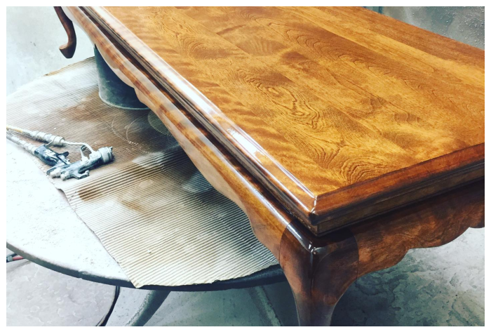 the furniture piece is ready for color. After a one-on-one consultation with the customer we will apply the chosen stain or