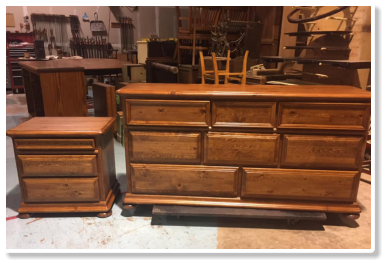 Our refinishing process starts by first removing any hardware from the furniture. This will be followed by the disassembly