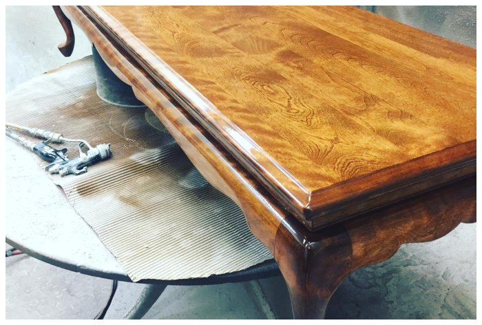 the furniture piece is ready for color. After a one-on-one consultation with the customer we will apply the chosen stain or